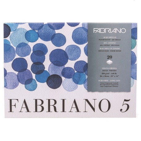 Papier Fabriano 5 je vyrobený z hodnotnej zmesi bavlny (50%) a precízne vybraného surového materiálu. Ideálne pre akvarel, temperu, gvaš, akryl, atrament, uhlík, vosk, grafit, kreslenie, litografiu, oznamy a pozvánky. Povrch papiera je odolnejší voči opakovaným ťahom štetcom.