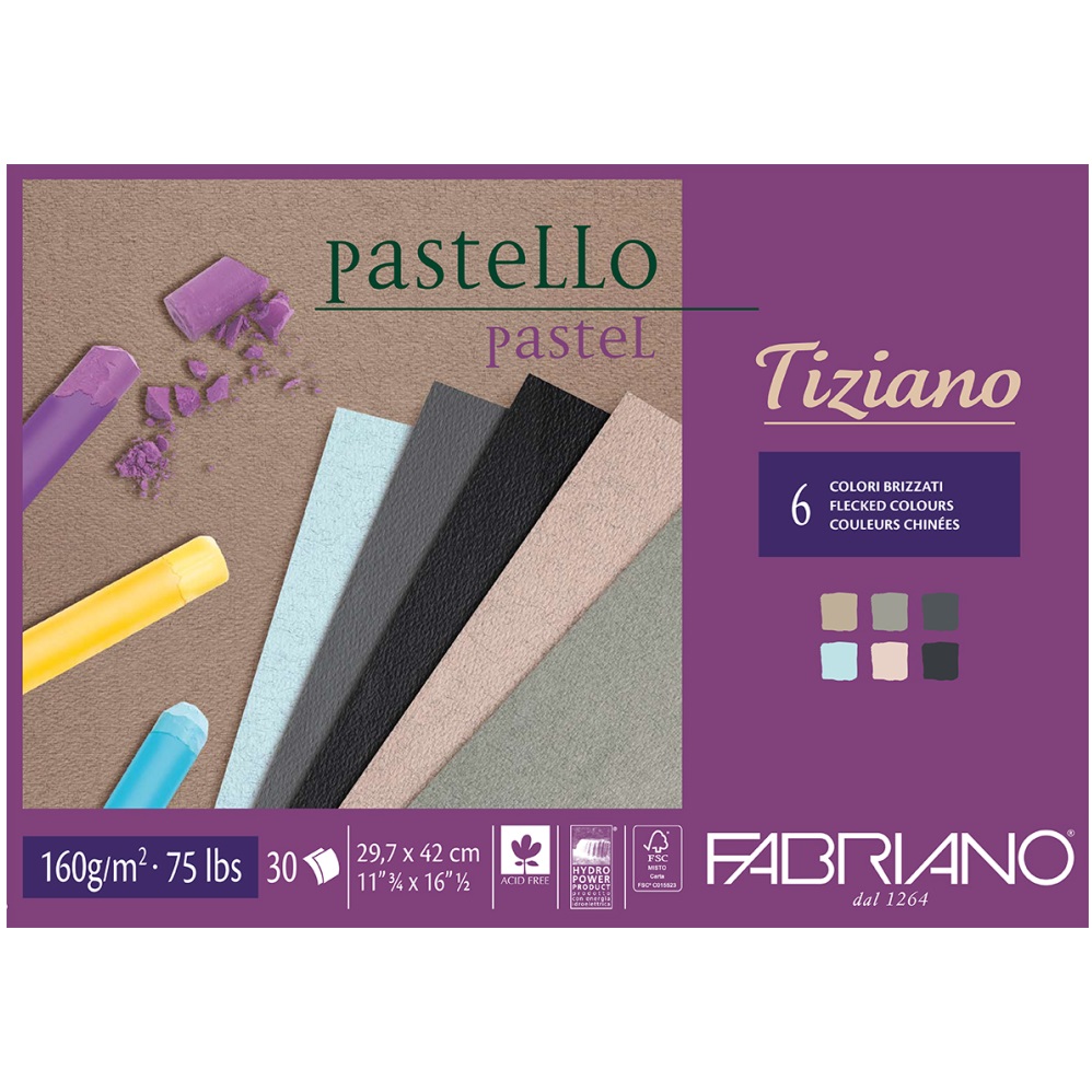 Papier Tiziano je vyrábaný z bavlny a čistej celulózy ECF podľa ISO 9706 ‚LONG LIFE‘. Na výrobu papiera sa nepoužívajú kyseliny, čo zabezpečuje stálosť papiera. Papier poskytuje dlhotrvajúcu svetlostálosť farieb a excelentný povrch, čo tento papier predurčuje na maľovanie pastelom, uhlíkom, ceruzkou, temperou ako aj airbrush technikou a akvarelovými farbami.