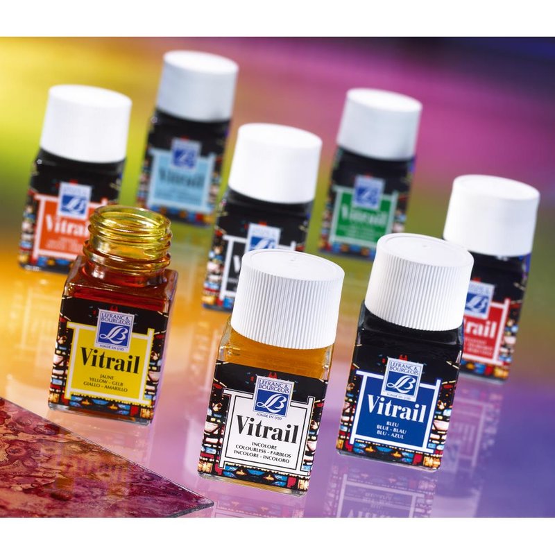 Farby na sklo Vitrail od francúzskej značky Lefranc & Bourgeois sú vysoko transparentné, svetlom prechádzajúce a medzi sebou miešateľné. Vyrobené sú na alkoholovom základe.