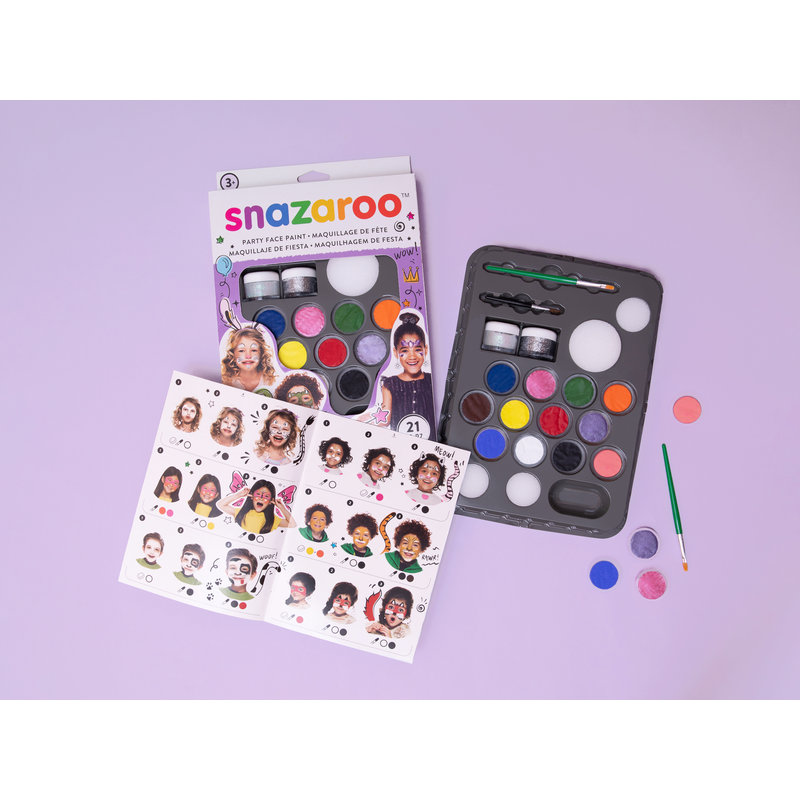 Sada na maľovanie na tvár SNAZAROO je ideálnou voľbou na detské oslavy, karnevaly či tematické párty. Obsahuje širokú škálu farieb vrátane klasických aj trblietavých odtieňov, ktoré umožňujú vytvárať pestré a kreatívne motívy.