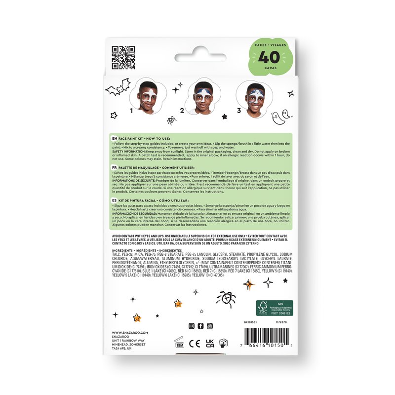 Sada na maľovanie na tvár SNAZAROO je ideálnou voľbou na detské oslavy, karnevaly či halloween.