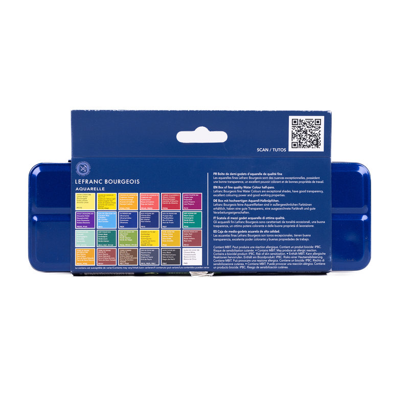 Sada 24 akvarelových farieb od francúzskej značky Lefranc & Bourgeois je ideálna pre umelcov všetkých úrovní. Farby ponúkajú živé pigmenty, vynikajúcu miešateľnosť a transparentnosť. Sada obsahuje základné odtiene, štetec a je uložená v praktickom kovovom púzdre.